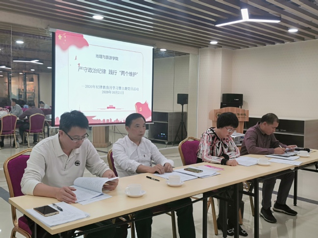 10月22日下午,地理与旅游学院在教学实验大楼1206室组织开展了《习近平谈治国理政》第三卷及2020年纪律教育月学习活动,地旅学院全体教职工参加了学习活动,活动由学院党总支副书记罗辉武主持。