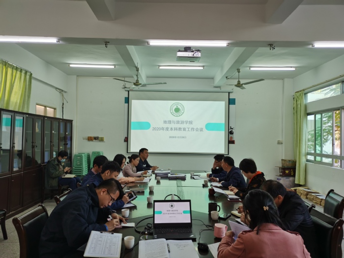 为深入贯彻落实全国教育大会精神和新时代全国高等学校本科教育工作会议精神,落实学校立德树人根本任务,打造“五位一体”高水平应用型本科教育,根据学校2020年度本科教育工作会议第二阶段的安排,12月28日上午,地理与旅游学院召开2020年度本科教育工作会议,从“产教融合协同育人机制创新”的角度对学院人才培养的现状、存在的问题和“十四五”工作举措展开讨论。地旅学院党政领导班子、教指委督导成员、系主任、实验室主任、专业负责人、教师代表、辅导员代表、学校教务处联络员参加会议,会议由地旅学院副院长王丰年主持。