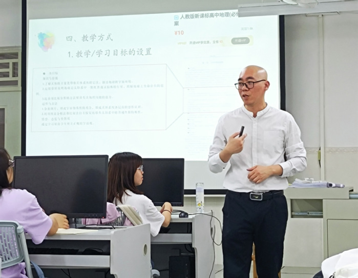 首先,余伟铭老师就2020修订版高中地理课标进行了详细地解读。余教师指出地理核心素养是完成立德树人教育根本任务的重要途径,需要通过课程内容、目标要求、教学方式、评价方式等方式落实。随后,余老师结合实例分别从高中地理课程内容、课程内容要求、教材对课标要求的呈现(2019人教版)、教学方式、学习评价等多方面全面、系统地对2020修订版高中地理课标进行了分析讲解,综合阐述了新课标对于培养学生基础知识与能力、发挥学生的主体性的重要变化。余老师详细的分析让学员们对于新课标有了更深入的了解,也同时使同学们更理解了作为一名地理师范生应该具备的地理素养与正确的教育教学观念。同时,余老师就高中地理知识强化方面,分别就地理知识的学习要注重尺度观念、章节知识的关联性、环境的整体性、人地的协调性等方面的培养展开了分享,讲述了知识不是独立存在的,而是相互关联的统一整体。