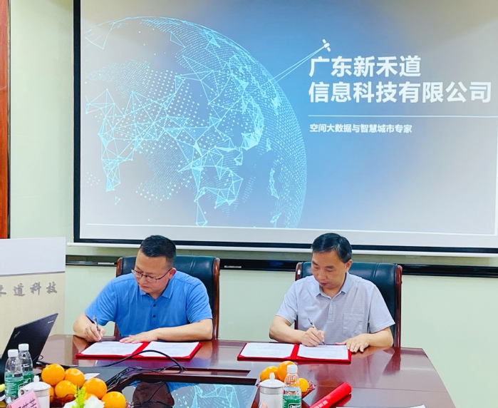 4月1日上午,地理与旅游学院与广东新禾道信息科技有限公司举行共建实践教学基地的签约授牌仪式,仪式在该公司会议室举行。广东新禾道信息科技有限公司总裁吴顺民、副总裁冯美柱、人力资源部副经理郑芳芳,地理与旅游学院长戴学军、党总支副书记罗辉武、教师代表黄秋华博士、辅导员刁佩珍及地信专业毕业班部分学生代表出席了本次签约授牌仪式。