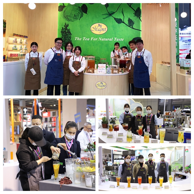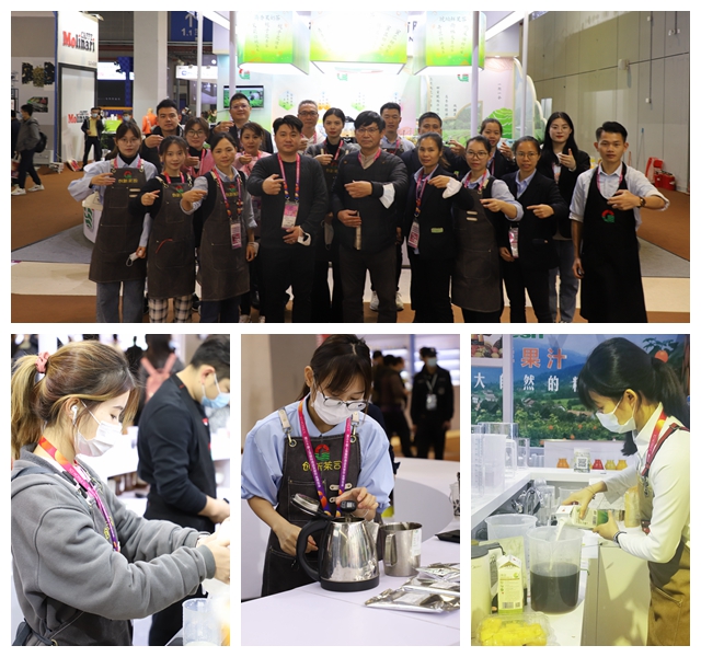 在横县桔扬茶业有限公司专业人员的带领下,同学们分别负责琥珀鲜果茶、创新微醺香槟茶、甜蜜蜜奶茶等板块,饮品覆盖了经典奶茶、果奶、鲜果茶、手冲茶、香槟茶、微醺茶饮、冷泡茶......在曼宁花草茶薇亭贸易(上海)有限公司专业人员的带领下,同学们分别负责海岛风情(蜜桃菠萝乌龙茶)、如意拿铁(玫香波士茶)、莓莓红茶(莓莓红茶)、贵妃血橙(贵妃荔枝红茶)、热情玫蜜(玫瑰蜜桃果茶)、瓜果天堂(水果天堂乌龙茶)、桂花蜜香红(桂花蜜香红茶)等饮品的制作。