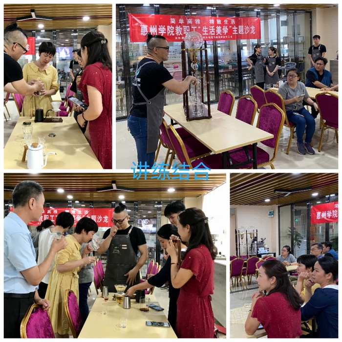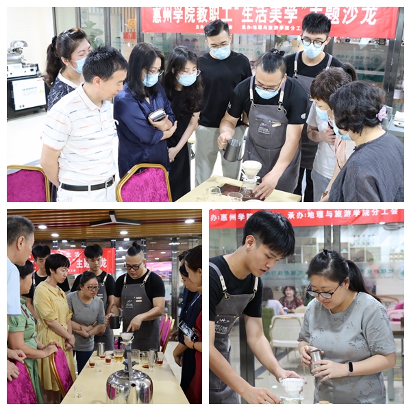 据悉,惠州学院教职工“生活美学”主题沙龙活动由校工会协同地理与旅游学院旅游管理系组织分批次面向全校教职工开展,是我校为了丰富广大教职工业余生活,提高教职工的生活审美情趣与水平,促进校园文化及和谐校园的建设,增强教职工的生活幸福感指数,推动建家活动,共含咖啡与生活艺术、浓缩咖啡制作、蔬果汁搭配营养学、水果雕刻艺术鉴赏、创意茶饮品艺术鉴赏、西餐礼仪文化六个系列课程。
