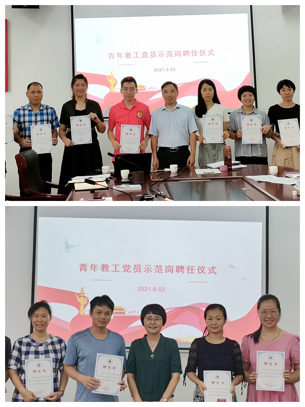 6月2日,地理与旅游学院教工党支部在11-1409会议室举行党史学习专题党课暨青年教工党员示范岗聘任仪式,全体教工党员参加党课学习。