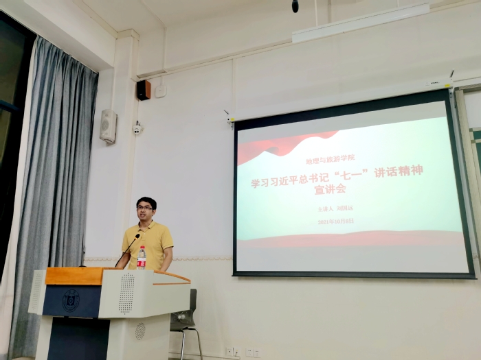 刘国远书记以“领悟中国共产党百年奋斗的鲜明主题:实现中华民族伟大复兴”为主题,介绍了习近平总书记在庆祝中国共产党成立100周年纪念大会上的讲话的主要内容、重要意义和重要地位。他讲到,“七一”讲话内涵丰富、意义深远。习近平总书记在讲话中向世界庄严宣告我国全面建成小康社会,科学解读了中国共产党的成功密码,回答了“中国共产党为什么能,马克思主义为什么行,中国特色社会主义为什么好”等问题。刘国远书记的宣讲进一步加深了与会师生对于习近平总书记“七一”重要讲话精神的理解和认识。