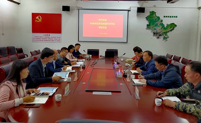 12月6日下午,岭南师范学院地理科学学院党委书记全柱、院长薛书文、副院长尚志海、地理系主任陈碧珊、信息系主任罗松英、实验中心主任黄日辉等一行6人到我院进行交流。我院院长戴学军院长,副院长王丰年,副院长吴鹏豹,地理科学系主任蒋宝林及实验室中心主任郭亚东等参与了陪同交流。双方在该院会议室进行了友好真挚的交流,座谈会由我院戴学军院长主持。
