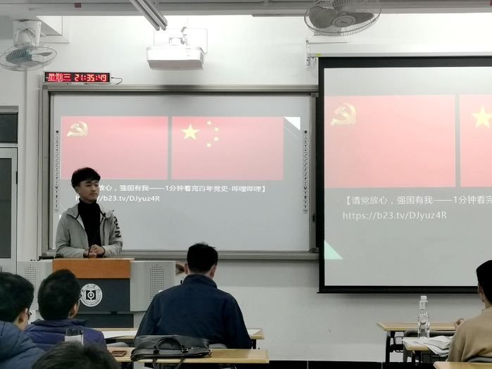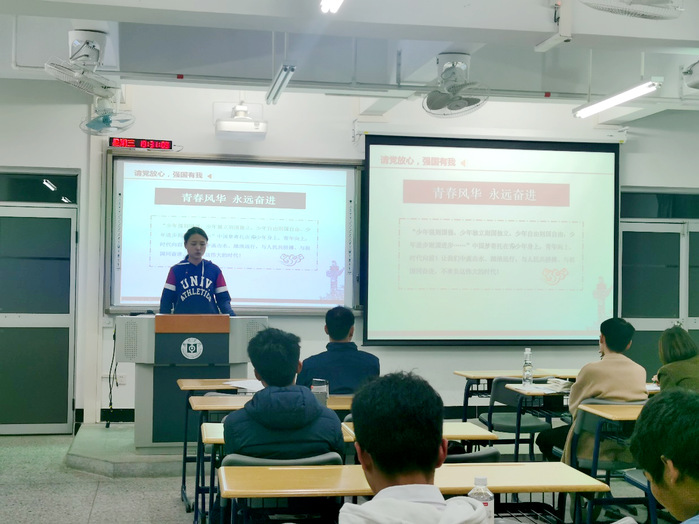 主持人首先介绍比赛规则。大赛以讲课形式为主,参赛选手结合班主任工作实际,围绕“请党放心,强国有我”等党史学习教育相关内容设计了主题班会。在讲解过程中,选手们展现出了较高的理论水平和专业素养。三位评委老师依次对同学们“主题班会设计”环节的表现进行了点评。他们在肯定选手们优秀表现的同时,也给选手们提出了宝贵的建议,促进选手们进一步的思考。经过选手们的激烈比拼以及评委们的细心评分,本次得分最高的同学——陈萍、廖志濠两位同学将代表学院参与校级决赛。