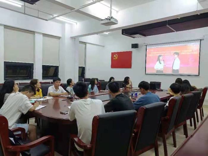 首先,参会学生干部一同收看青年马克思主义公开课视频,视频围绕“做有志气、有骨气、有底气的新时代青年”的主题,以微团课、心得分享、朗诵三种形式生动阐述了习近平总书记“七一”重要讲话精神相关内容的思想内涵。参会团学干部麦晓东分享此次学习的心得体会,他分享了自己对于如何做一名有志气、有骨气、有底气的新时代青年的理解和感悟。
