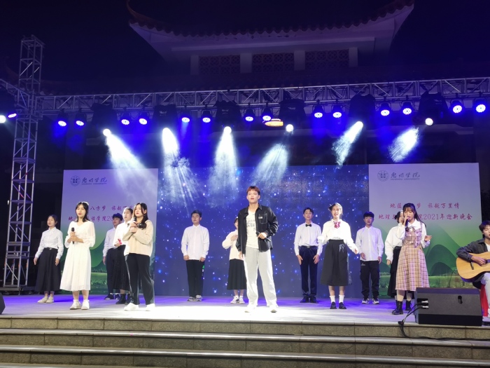 为了丰富学院文化生活,营造积极向上、团结奋进的学习氛围,给2021级新同学们一个展示自我的舞台,12月11日晚,我院在学校丰湖园广场隆重举行“地蕴八方梦,旅越万里情”迎新晚会,我院全体院领导、教师代表、学生代表及2021级全体新生观看了晚会。