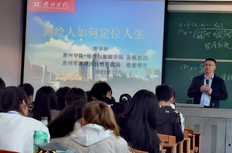 为了让同学们对自己未来人生有好的定位和规划,12月9日下午,我院邀请地理信息科学专业外聘专家惠州市惠城区自然资源局党委委员、测绘高级工程师唐华林为学院2020级地理信息科学专业学生开展题为“测绘人如何定位人生”的嵌入式课堂教学,戴学军院长和郭亚东博士全程参与了本次嵌入式教学。