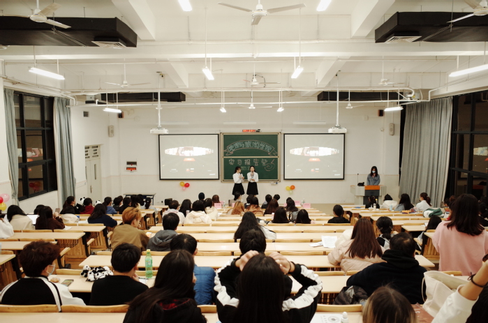 接下来,实习报告会分为实习行程安排与团日活动汇报、新时代酒店的智能化研讨、智能生活下的智慧旅游分享、旅行情景剧表演等四个环节。同学们分别上台展示了考察实习中的党史学习心得、实习过程中对酒店业发展的思考,展示了“互联网+旅游”及智慧旅游的发展现状,交流了实习过程中出现的问题及解决方法。报告会还设有抽奖、快问快答及交流环节。