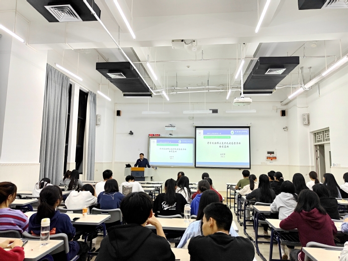 戴学军院长为我院第66期入党积极分子讲授了主题为《中华民族伟大复兴之更为坚实的物质基础》的“思政第一课”。他从制度保证、物质基础、精神力量三个方面解读了新时代中国特色社会主义的历史贡献,并从历史对比、中外对比等角度解读了中华民族伟大复兴的构想,强调中华民族伟大复兴是物质文明、政治文明、精神文明、社会文明、生态文明协调发展的伟大复兴。随后,他从经济腾飞、脱贫攻坚、疫情防控、生态保护等四个方面为同学们讲解了新时代中国特色社会主义为中华民族伟大复兴奠定的坚实物质基础,并勉励同学们从抗疫做起、从专业学起,为中华民族伟大复兴而努力奋斗!