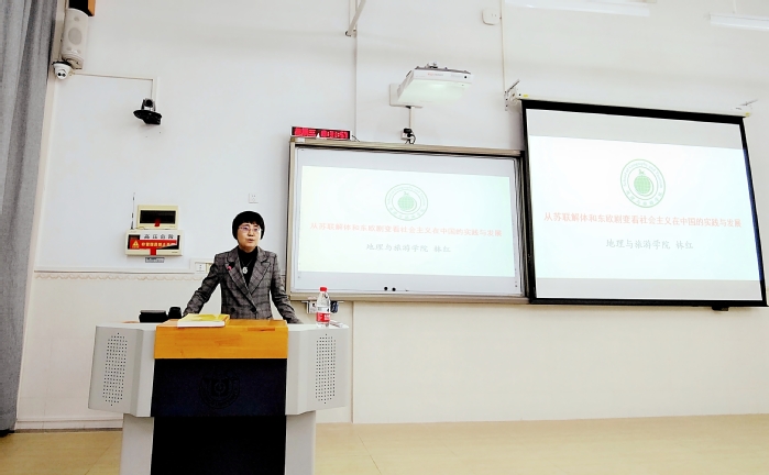 林红书记以《从苏联解体和东欧剧变看社会主义在中国的实践与发展》为主题为我院青马学堂、团校培训班学员讲授一课。她为同学们深入浅出地介绍了苏联解体与东欧剧变的背景与历史,并深刻分析了苏联解体与东欧剧变的内因及外因。在世界社会主义发展的历史中,她简单介绍了社会主义在中国的发展历史,重点为同学们讲解了党的十八大以来以习近平同志为主要代表的中国共产党人创立了习近平新时代中国特色社会主义思想、开创中国特色社会主义新时代。通过总结苏联解体、东欧剧变与中国特色社会主义发展的历史经验,她指出中国特色社会主义是科学社会主义的理论逻辑与中国社会发展的历史逻辑的统一,勉励同学们矢志不渝做共产主义远大理想和中国特色社会主义共同理想的坚定信仰者和忠实实践者!