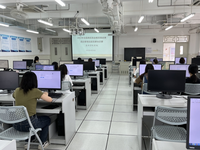 6月28日,2022年全国高校商业精英挑战赛酒店管理实践知识赛(惠州学院赛区)在旭日科技大楼B座1301举行。地理与旅游学院旅游管理系主任金艳春、古圣鈺、陈佳升等老师参与考试的监考及保障工作。