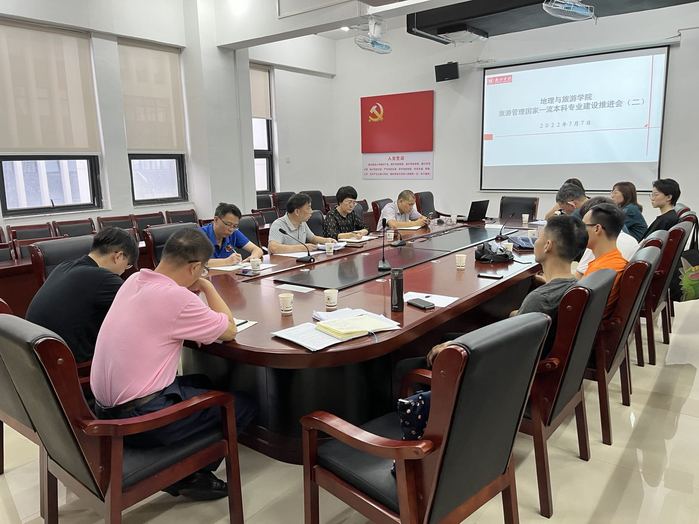 7月7日下午,地理与旅游学院旅游管理国家一流本科专业建设第二次推进会在该院会议室召开。地理与旅游学院全体领导班子成员、旅游管理专业负责人及旅游管理系全体专业教师参加会议。会议由院长戴学军主持。