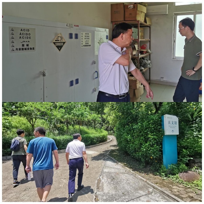为确保暑期期间实验室安全以及为秋季学期实验室正常开放使用做好准备,7月8日上午,地理与旅游学院院长戴学军带领该院分管实验室工作的吴鹏豹副院长及实验室有关人员对全院实验室进行了实地安全检查。
