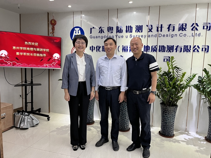 林红书记、戴学军院长与广东粤陆勘测设计有限公司总经理赵忠岩先生合影
