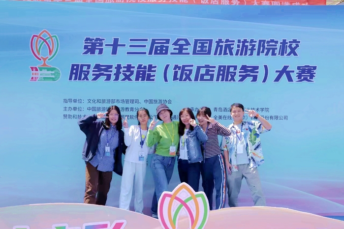 5月10-14日,由中国旅游协会旅游教育分会主办、青岛酒店管理职业技术学院承办的“云驴通杯”第十三届全国旅游院校服务技能(饭店服务)大赛在青岛酒店管理职业技术学院举行,我院旅游管理专业的张萱德、张泽纯、杨旭云、邬彩娜四名同学在1035名参赛选手中突破重围,分别荣获鸡尾酒调制二等奖、中餐宴会摆台二等奖、西餐宴会摆台二等奖和中式铺床三等奖。