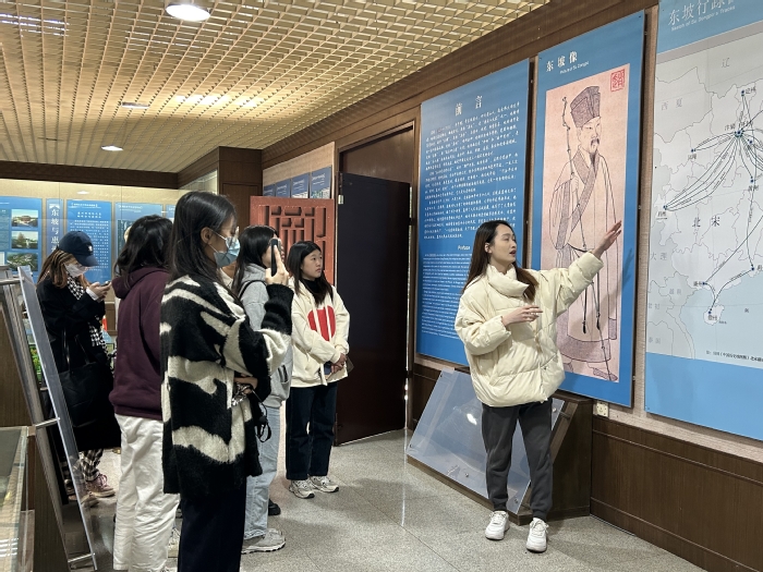 随后,郑部长带领大家前往苏东坡纪念馆,进行景区讲解示范。在娓娓道来的讲解中,同学们感受到了郑部长的讲解功底,认识到了出色的讲解是需要知识的积累和讲解历练的沉淀。见习活动的最后,郑部长为学生解疑答惑,传授关于景区导游的从业经验和见解,拓宽了同学们的眼界,并丰富了经验储备。