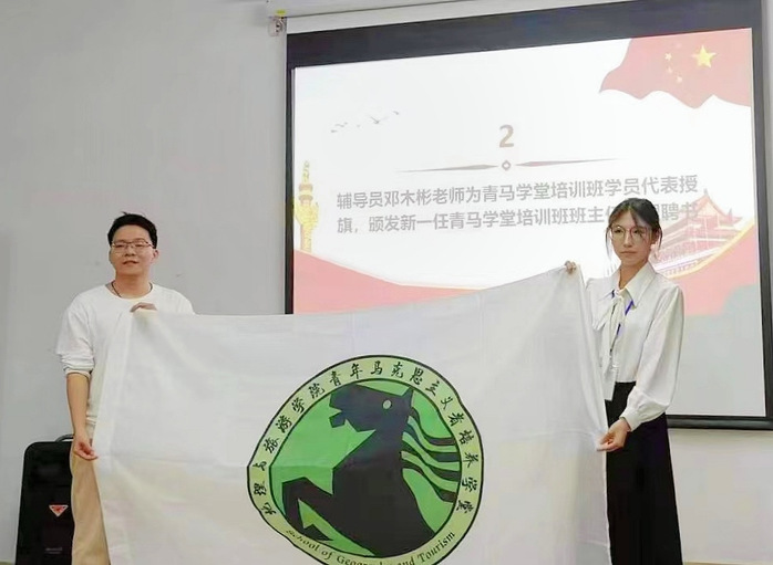 辅导员邓木彬为第七期青马学堂学员代表授旗