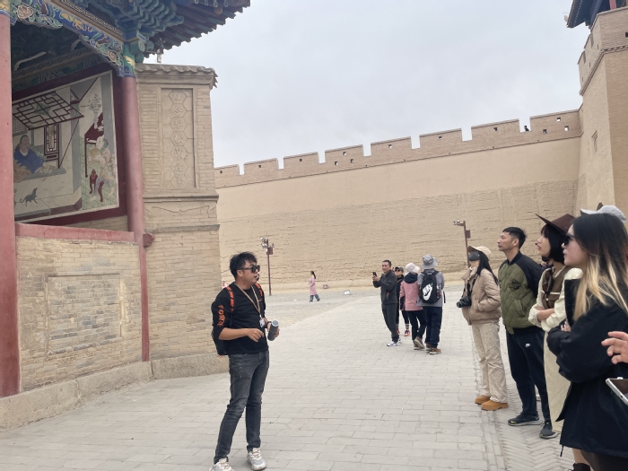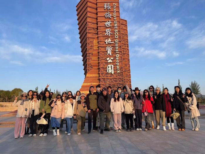 第三站,师生来到了敦煌,重点参观了世界上现存规模最大、内容最丰富的佛教艺术地——莫高窟。欣赏了主题电影《千年莫高》以及精美的球幕电影《梦幻佛宫》。景区随机讲解8个洞窟过程中,同学们对导游服务工作以及景区管理有了更清晰的认知。莫高窟丰富的历史文化和旅游资源,为同学们上了生动的艺术、建筑、历史等多方面主题课程。此外在鸣沙山月牙泉、青海湖等景区,同学们学旅融合,寓学于旅,考察了当地的特色美食、文旅纪念品、夜经济等元素。