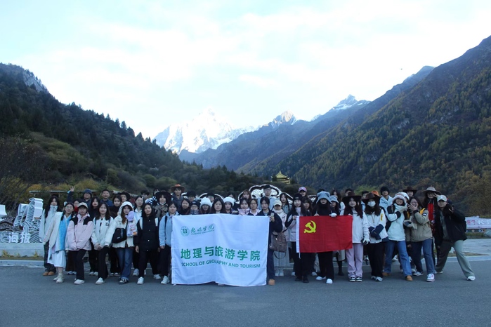 考察的最后一站是“东方的阿尔卑斯”——四姑娘山。在考察过程中,同学们模拟了导游对客服务,化身为导游,讲解四姑娘山的传说,以实践讲解强化对当地资源的认识、锻炼讲解能力。一路饱览高山冰雪、草甸风光,全面考察了“雪域高原”旅游元素。