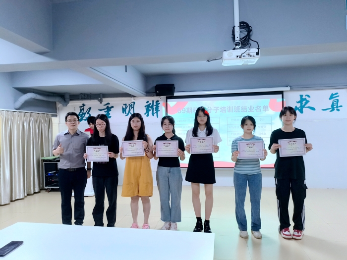 会上,学生党支部书记邓木彬为69期积极分子代表逐一颁发结业证书。他寄语69期入党积极分子以培训结业为起点,继续砥砺前行、积极争取入党;勉励70期入党积极分子争作合格的入党积极分子,朝着入党的目标大步前进。