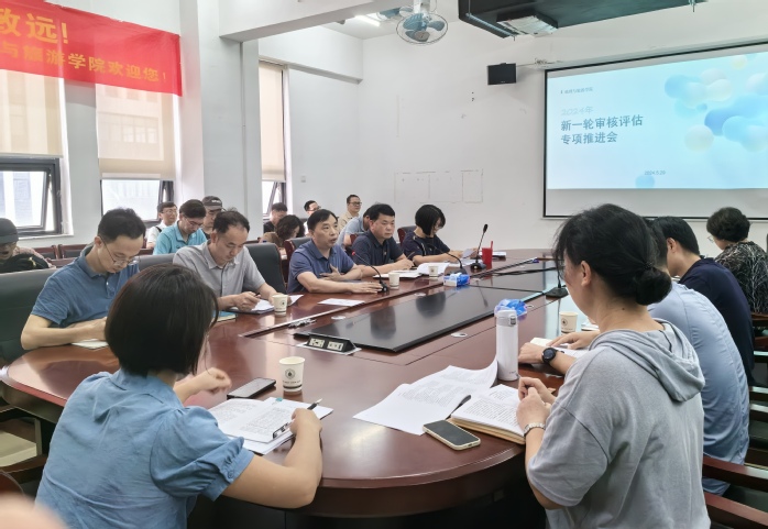 戴学军院长首先就新一轮审核评估的背景进行了说明,传达了5月28日学校本科教育教学水平评估工作推进会的会议精神和要求,强调了预评估的重要性和注意事项。