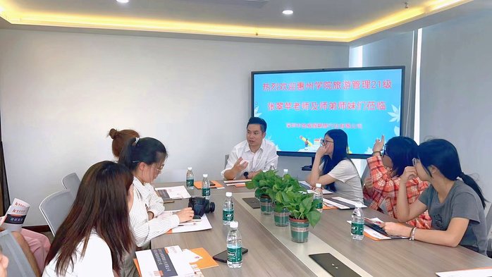 行程首站来到了深圳宝旅旅游,任总先介绍了公司的经营模式和业务板块,深入浅出为同学们分享了导游带团技巧和实现增值服务的技巧,并与学生进行互动交流,强调导游在做好本职工作的同时也要学会保护自己和旅行社,把服务细节做到位才能减少或避免纠纷。