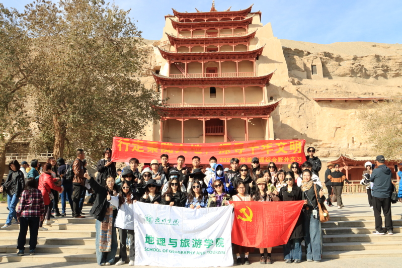 10月17日,我校2022级旅游管理专业学生在甘肃的野外综合实习途中,在敦煌莫高窟开展了一场旨在探索传统文化遗产保护与传承的考察活动。在这片古老而神秘的土地上,学生们不仅亲身感受到了莫高窟的无穷魅力,更深刻体会到了文物流失带来的历史教训以及文物保护的紧迫性。