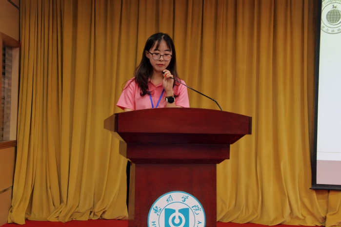 新生干部代表王淼发言。她讲述自身在团委办公室从彷徨到积极转变的经历,表达在前辈的引领下与三会共同发展的信心,以及当下积极迎接挑战和期待收获的状态。