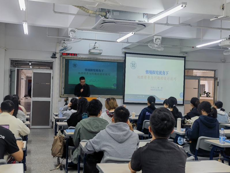为进一步深化课程教学改革,提升师范生的教育教学能力,我院特邀请惠州市实验中学的高级教师韩涛担任指导教师,为2023级地理科学1班、2班和3班分别于11月3日、4日开展了嵌入式课堂教学活动。本次教学活动以“情境探究学习模式”为主题,韩涛老师给同学们带来了一场富有启发性的教学示范与互动体验。