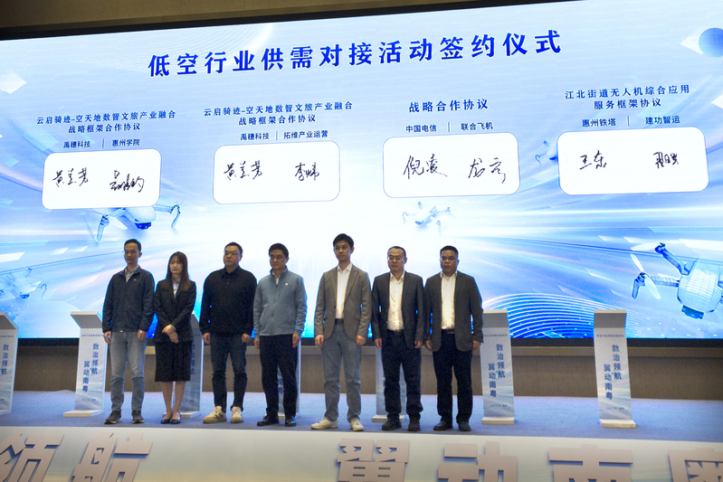 在低空行业供需对接活动环节,惠州市政务和数据局对惠州市低空供需活动进行了介绍。惠州市工业和信息化局介绍了惠州市低空产业的相关政策。惠州市商务局则介绍了惠州的招商政策。随后,国内低空行业相关企业,介绍了各自企业在低空领域的核心产品。最后,我院吴鹏豹作为惠州学院代表参与了低空行业供需对接签约仪式。