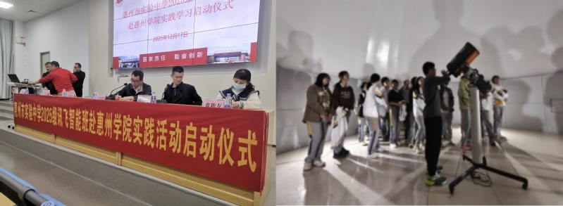 为深化校际协同育人合作,充分发挥高校学科资源优势,助力中学生实践能力与科学素养提升,12月17日晚,地理与旅游学院携手惠州市实验中学,在惠州学院天文馆成功举办“仰望星空,立志成才”主题实践学习活动。地理与旅游学院专任教师及天文地理协会学生干事全程提供专业指导,惠州市实验中学2025级“讯飞班”四十多名师生参与活动。