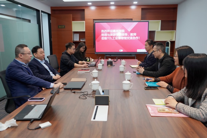 在TCL集团总部,学院一行受到集团博物馆项目专班领导小组副组长兼专家顾问组组长陈乐山、TCL集团博物馆专班商务总监何肖琬及项目相关负责人的热情接待。双方围绕TCL工业博物馆的运营管理、人才需求、实习基地建设以及未来可持续合作方向等内容进行了深入座谈。