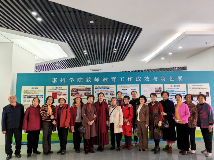 活动伊始,退休教师一行参观了学校“百千万工程”成果展,深入了解了惠州学院在服务地方经济社会发展中取得的各项成就,并对学校的历史沿革与文化积淀形成更直观的认识。
