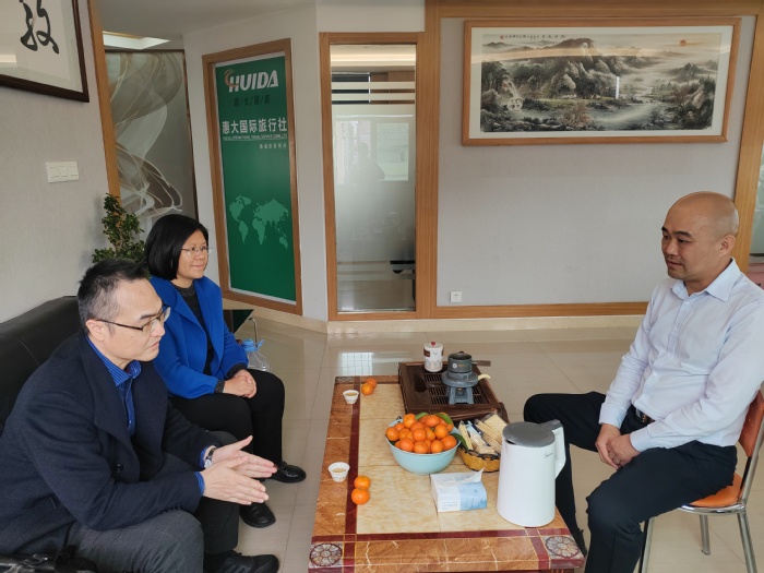 为深化产教融合、拓宽就业渠道,1月29日上午,我院党委书记曾蔚阳、副书记祝琳赴惠州市惠大国际旅行社有限公司,开展校友走访与访企拓岗工作,为毕业生高质量就业凝聚合力。